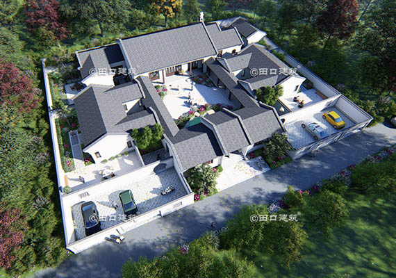 占地面積 813.9㎡ 土建造價 230.0萬 四棟獨門獨戶的中式別院組成的大合院