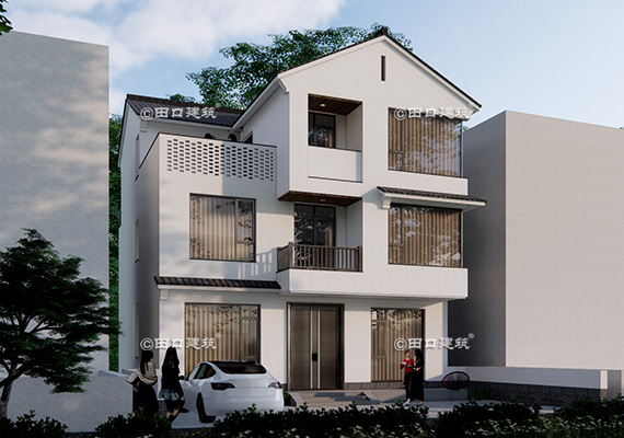 占地面積 131.7㎡ 土建造價 40.0萬 三層新中式小別院